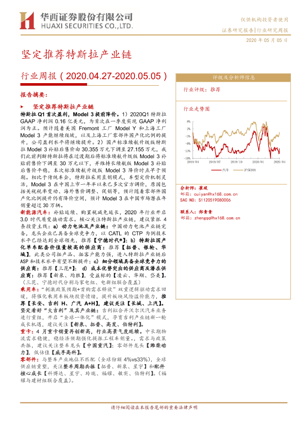 【华西证券】【20200505】20200505-华西证券-汽车行业周报:坚定推荐特斯拉产业链-22页