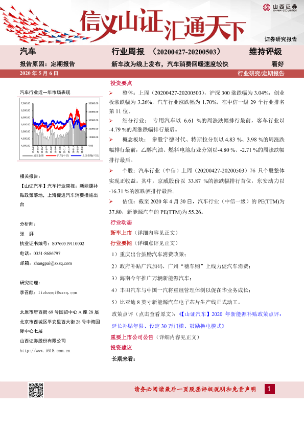 【山西证券】【20200506】20200506-山西证券-汽车行业周报:新车改为线上发布,汽车消费回暖速度较快-27页