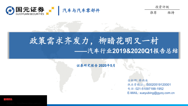 【国元证券】【202005】政策需求齐发力,柳暗花明又一村——汽车行业2019&2020Q1报告总结-26页