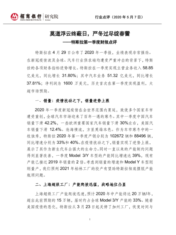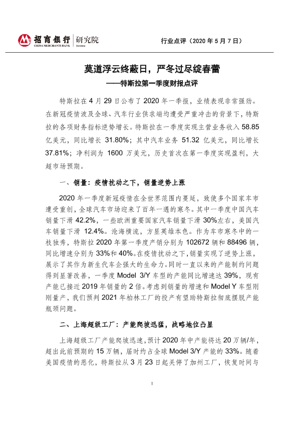 【招商银行】【20200507】莫道浮云终蔽日,严冬过尽绽春蕾——特斯拉第一季度财报点评-3页