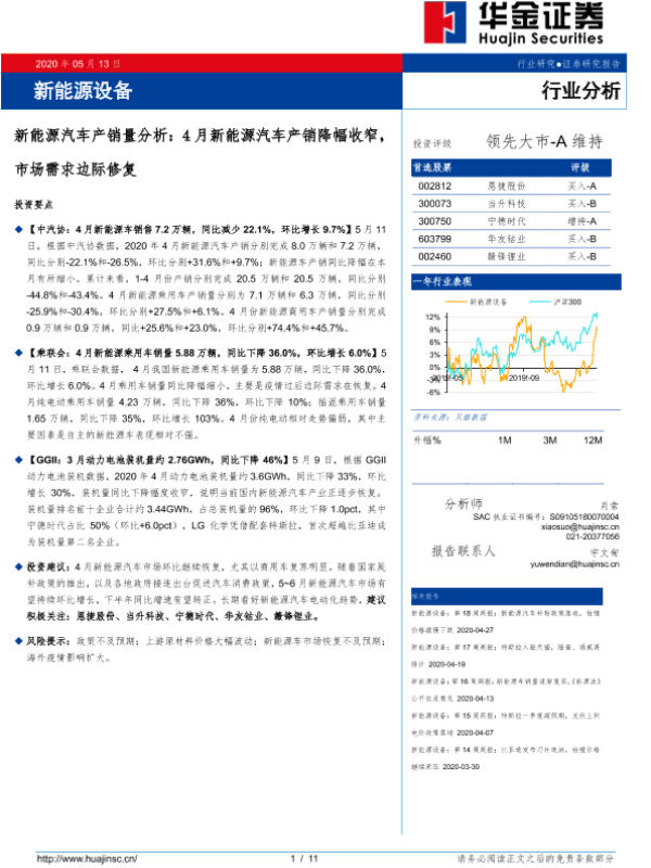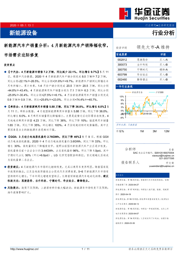 【华金证券】【20200513】4月新能源汽车产销降幅收窄,市场需求边际修复-11页