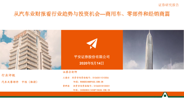 【平安证券】【20200514】从汽车业财报看行业趋势与投资机会—商用车、零部件和经销商篇-36页