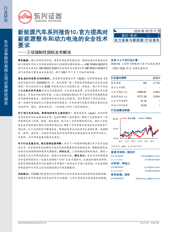 【东兴证券】【20200517】三项强制性国标发布解读:新能源汽车系列报告10:官方提高对新能源整车和动力电池的安全技术要求-3页