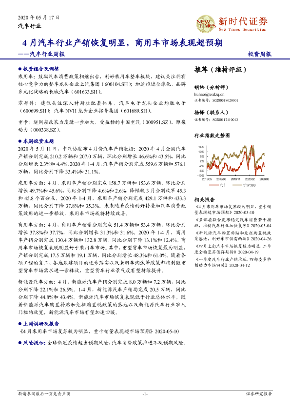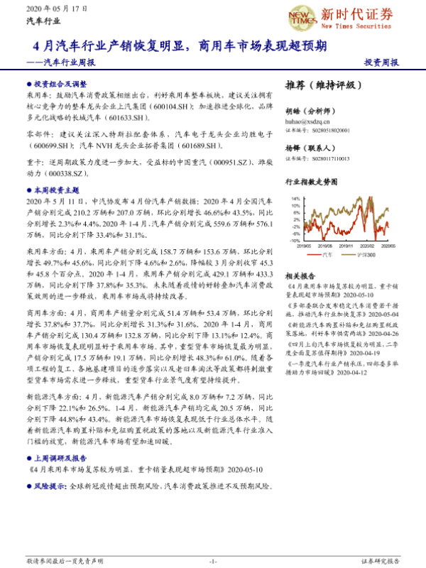 【新时代证券】【20200517】4月汽车行业产销恢复明显,商用车市场表现超预期-19页