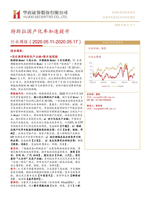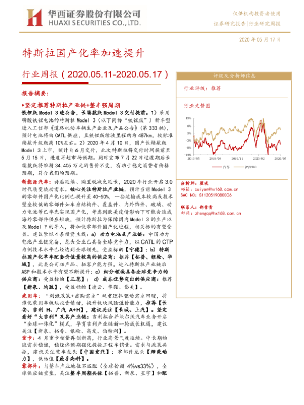 【华西证券】【20200517】20200517-华西证券-汽车行业周报:特斯拉国产化率加速提升-22页