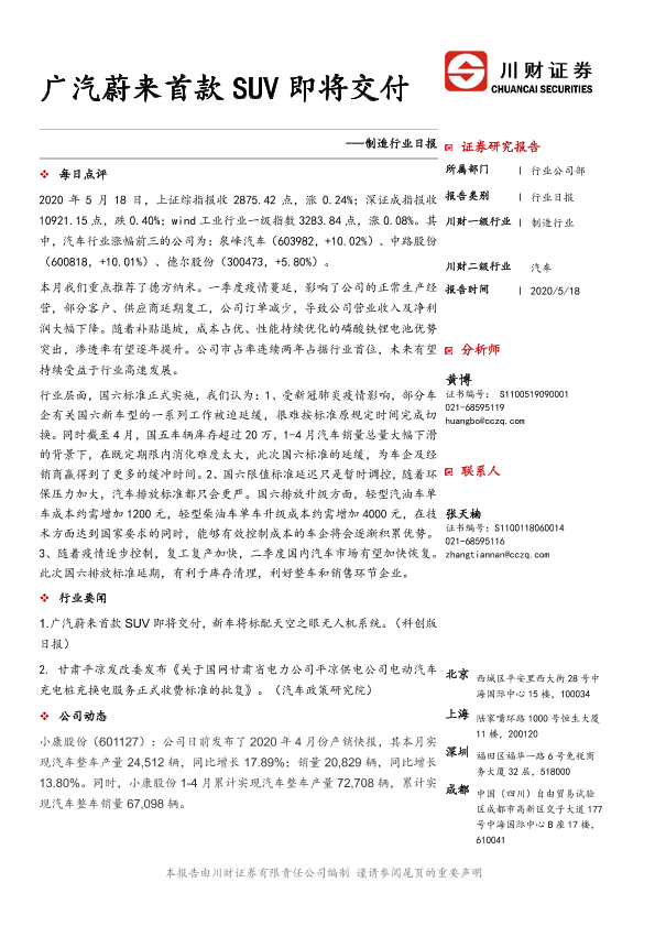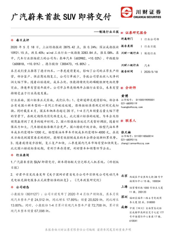 【川财证券】【20200518】制造行业日报:广汽蔚来首款SUV即将交付-4页