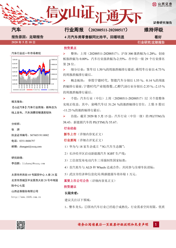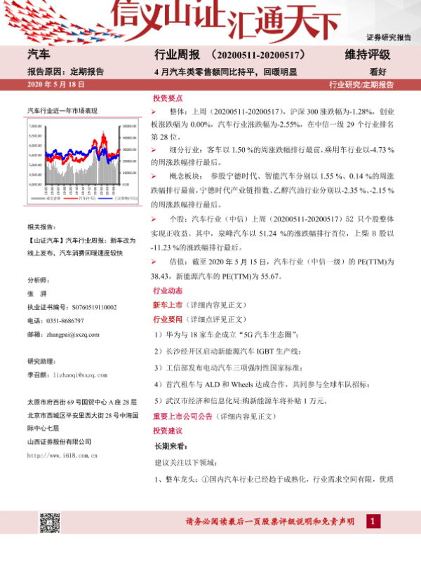 【山西证券】【20200518】20200518-山西证券-汽车行业周报:4月汽车类零售额同比持平,回暖明显-15页