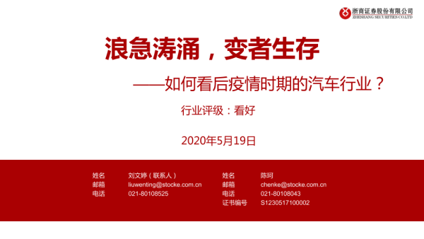 【浙商证券】【20200519】浪急涛涌,变者生存——如何看后疫情时期的汽车行业?-26页