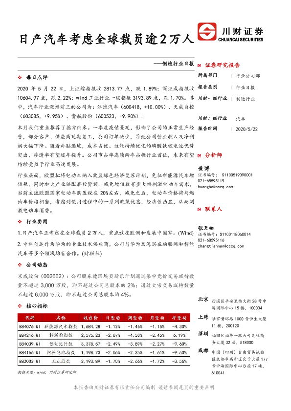 【川财证券】【20200522】制造行业日报:日产汽车考虑全球裁员逾2万人-3页