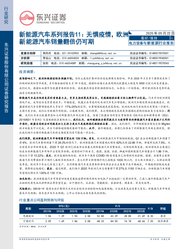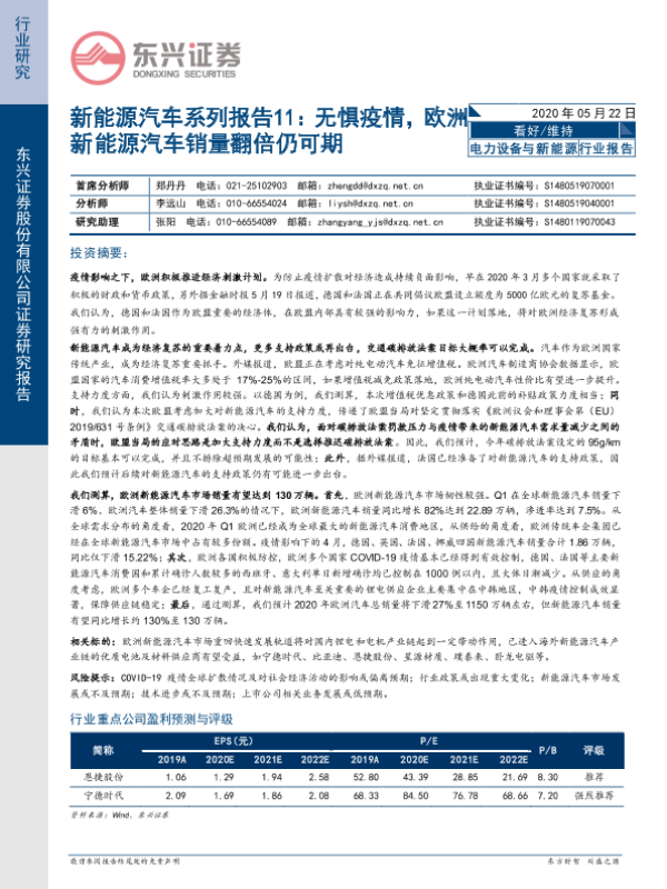 【东兴证券】【20200522】新能源汽车系列报告11:无惧疫情,欧洲新能源汽车销量翻倍仍可期-20页