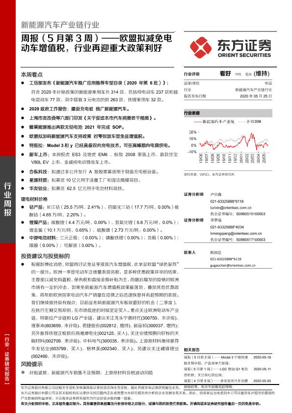 【东方证券】【20200525】20200525-东方证券-新能源汽车产业链行业周报(5月第3周):欧盟拟减免电动车增值税,行业再迎重大政策利好-26页