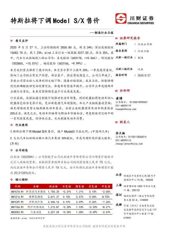 【川财证券】【20200527】制造行业日报:特斯拉将下调Model S X售价-3页