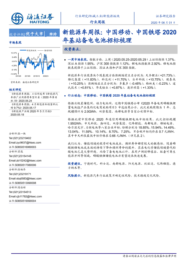 【海通证券】【20200601】20200601-海通证券-新能源车周报:中国移动、中国铁塔2020年基站备电电池招标梳理-5页