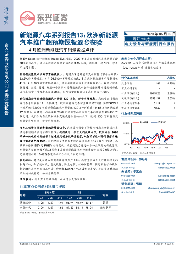 【东兴证券】【20200602】4月欧洲新能源汽车销量数据点评:新能源汽车系列报告13:欧洲新能源汽车推广超预期逻辑逐步获验-8页