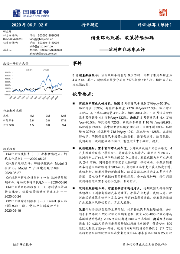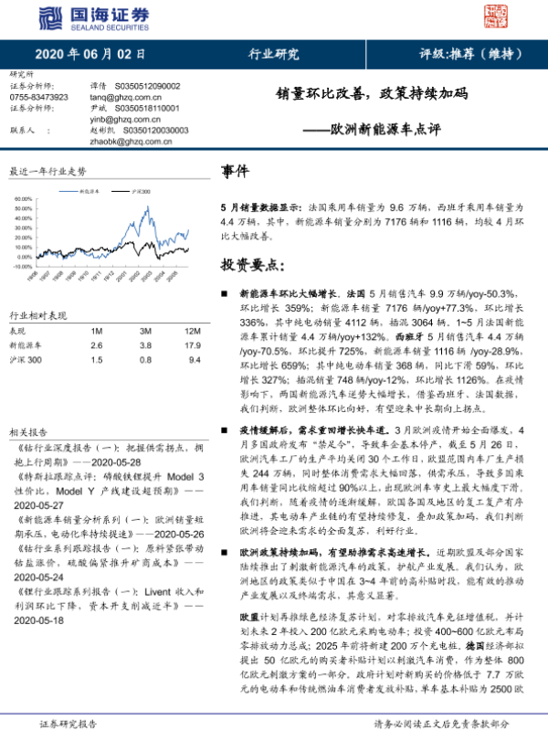 【国海证券】【20200602】欧洲新能源车点评:销量环比改善,政策持续加码-9页