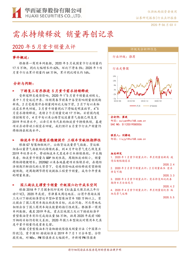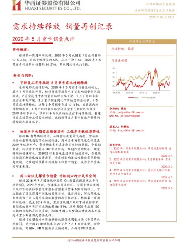 【华西证券】【20200603】2020年5月重卡销量点评:需求持续释放 销量再创记录-6页