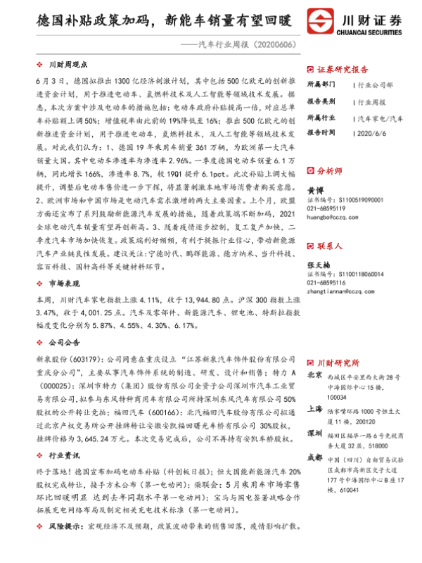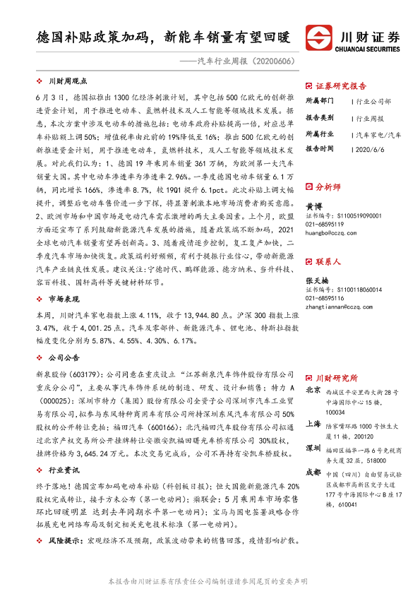 【川财证券】【20200606】20200606-川财证券-汽车行业周报:德国补贴政策加码,新能车销量有望回暖-8页
