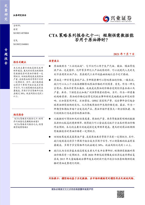 【兴业证券】【20210707】CTA策略系列报告之十一:短期供需数据能否用于原油择时?-18页