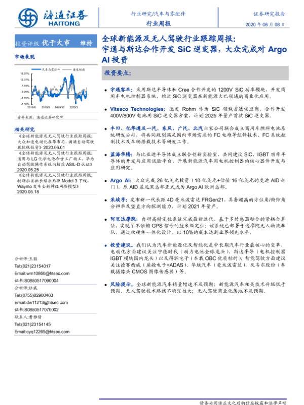 【海通证券】【20200608】全球新能源及无人驾驶行业跟踪周报:宇通与斯达合作开发SiC逆变器,大众完成对ArgoAI投资-6页