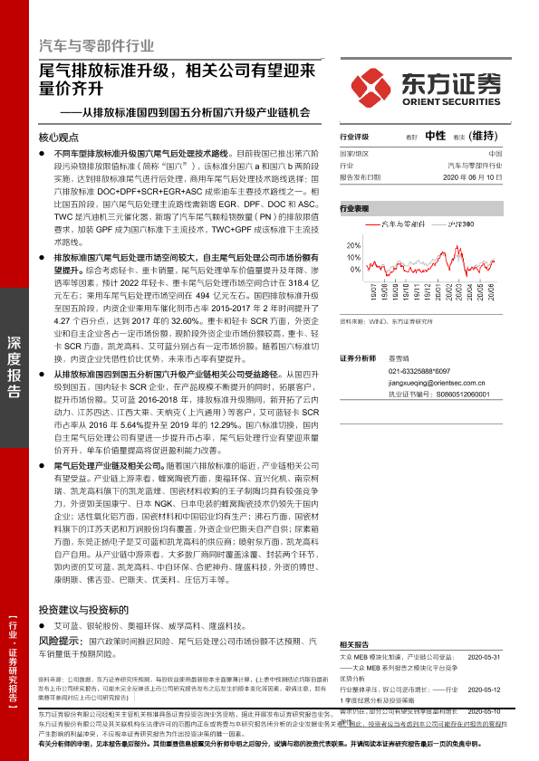 【东方证券】【20200610】汽车与零部件行业深度报告:从排放标准国四到国五分析国六升级产业链机会-21页
