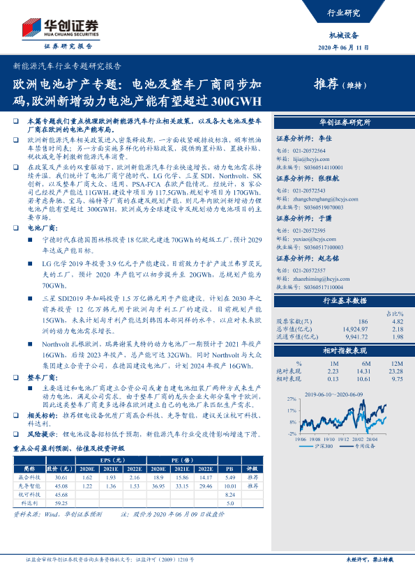 【华创证券】【20200611】欧洲电池扩产专题:电池及整车厂商同步加码,欧洲新增动力电池产能有望超过300GWH-13页