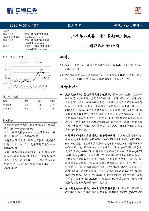 【国海证券】【20200613】20200613-国海证券-新能源车行业点评:产销环比改善,迎中长期向上拐点-9页