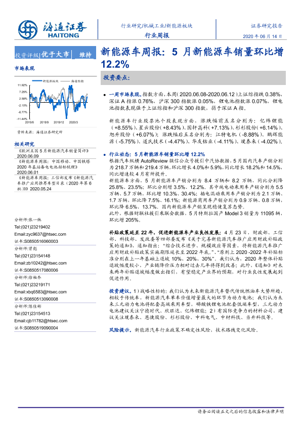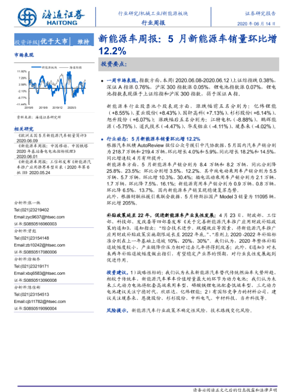【海通证券】【20200614】20200614-海通证券-新能源车周报:5月新能源车销量环比增12.2%-5页