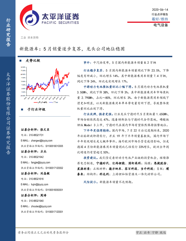 【太平洋证券】【20200614】新能源车:5月销量逐步复苏,龙头公司地位稳固-3页