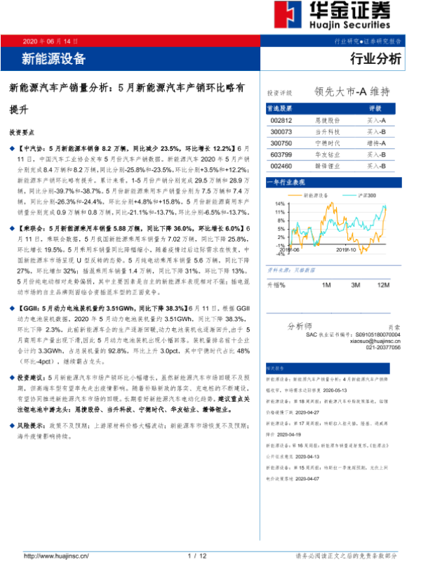 【华金证券】【20200614】新能源汽车产销量分析:5月新能源汽车产销环比略有提升-12页