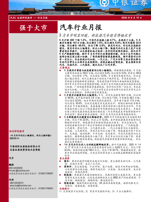 【中银证券】【20200615】20200615-中银证券-汽车行业月报:5月车市明显回暖,新能源汽车销量降幅收窄-17页