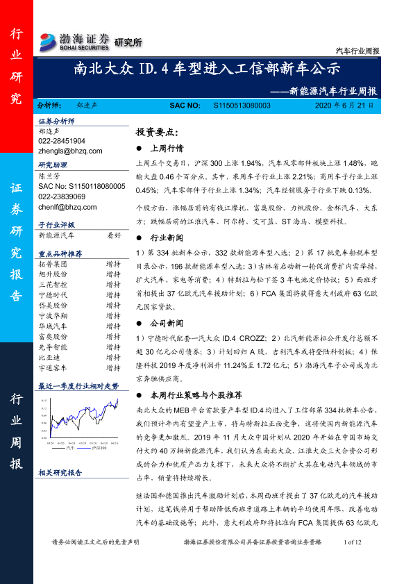 【渤海证券】【20200621】新能源汽车行业周报:南北大众ID.4车型进入工信部新车公示-12页