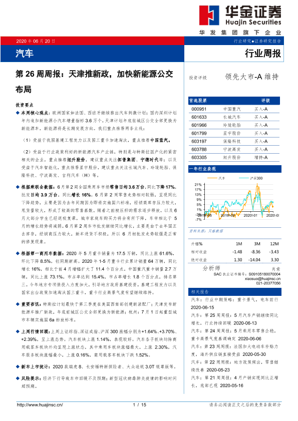 【华金证券】【20200620】汽车第26周周报:天津推新政,加快新能源公交布局-15页