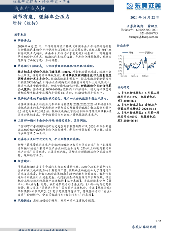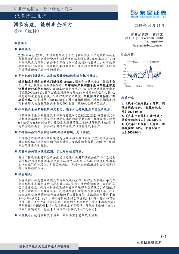 【东吴证券】【20200622】汽车行业点评:调节有度,缓解车企压力-2页