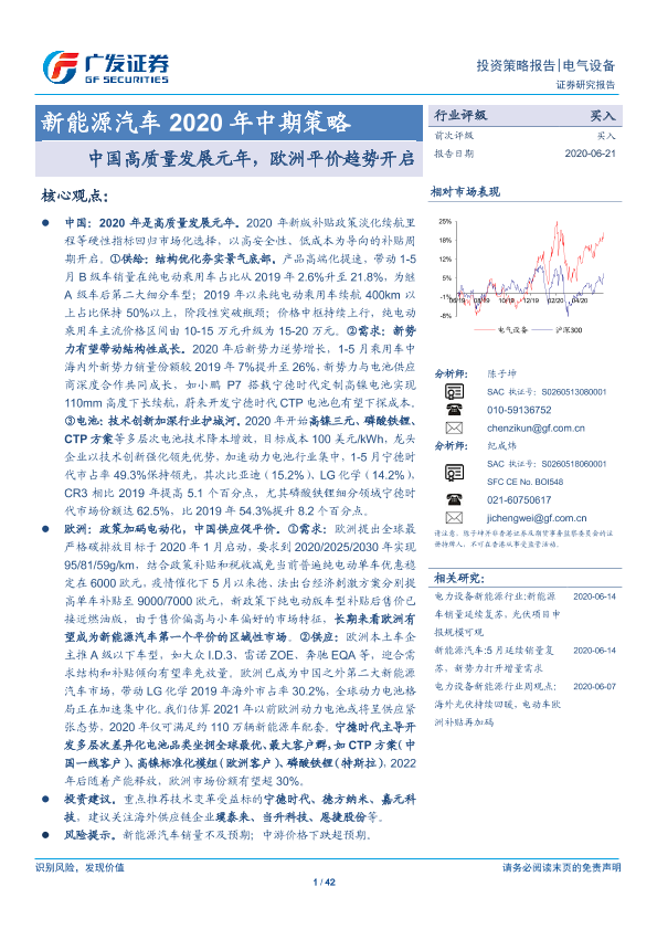 【广发证券】【20200621】新能源汽车2020年中期策略:中国高质量发展元年,欧洲平价趋势开启-42页