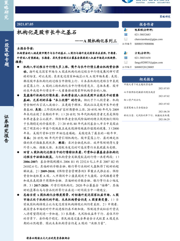 【国泰君安证券】【20210705】机构化是股市长牛之基石-24页