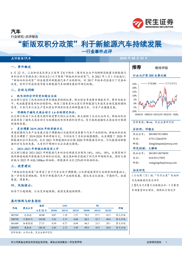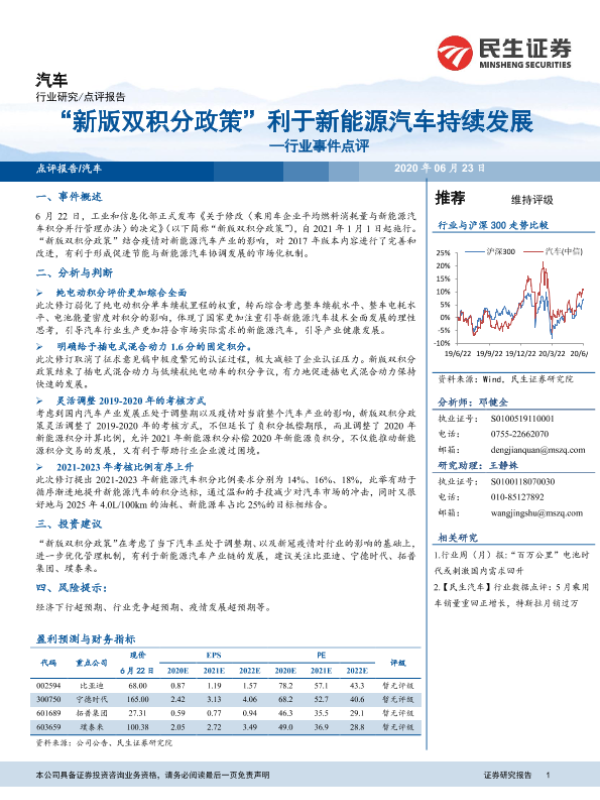 【民生证券】【20200623】汽车行业事件点评:“新版双积分政策”利于新能源汽车持续发展-3页