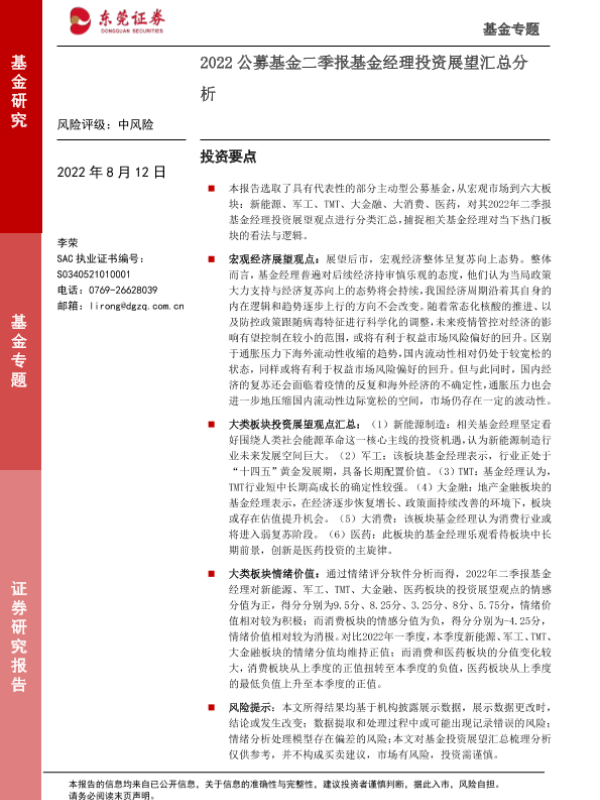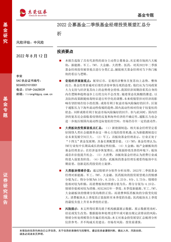 【东莞证券】【20220812】2022Q2公募基金二季报基金经理投资展望汇总分析-17页