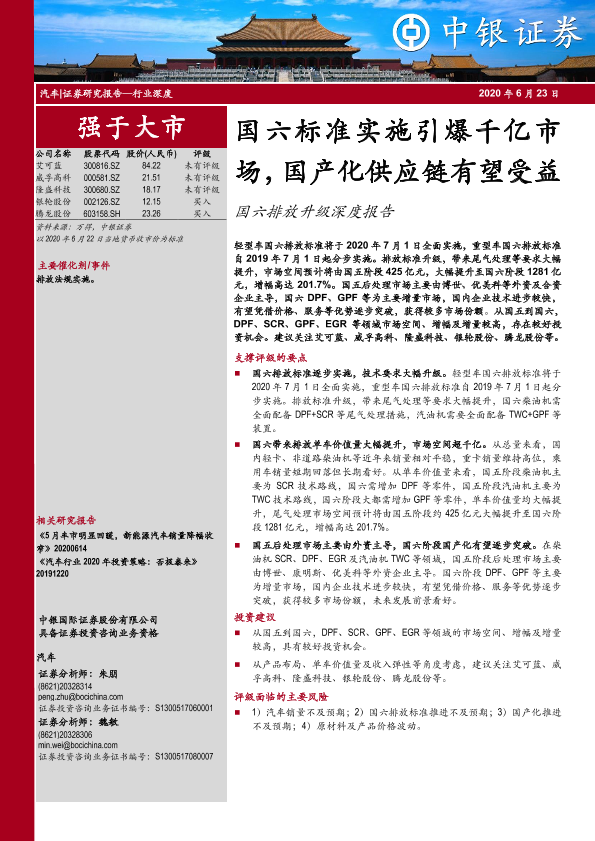 【中银证券】【20200623】国六标准实施引爆千亿市场,国产化供应链有望受益-34页