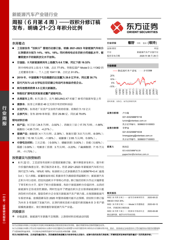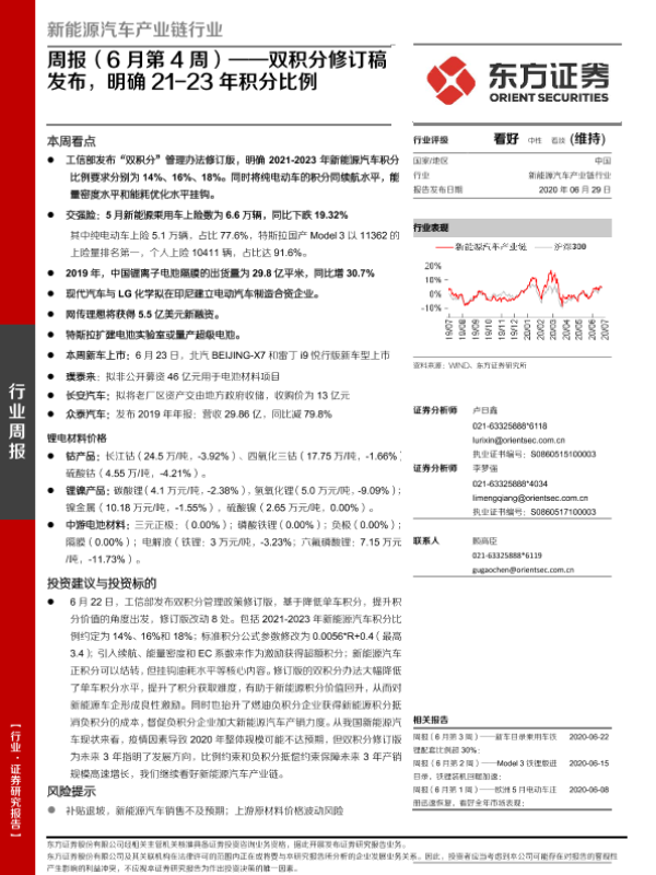 【东方证券】【20200629】新能源汽车产业链行业周报(6月第4周):双积分修订稿发布,明确21-23年积分比例-24页