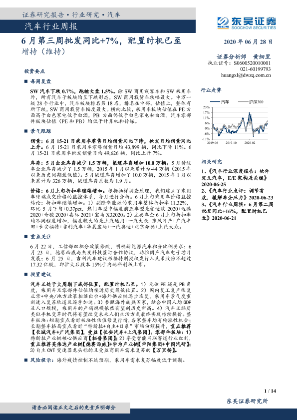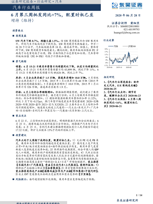 【东吴证券】【20200628】20200628-东吴证券-汽车行业周报:6月第三周批发同比+7%,配置时机已至-14页