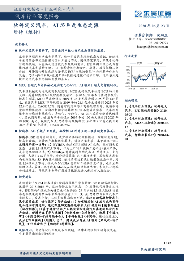【东吴证券】【20200623】汽车行业深度报告:软件定义汽车,AI芯片是生态之源-47页