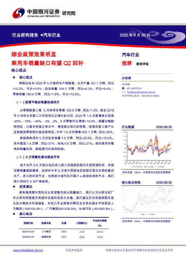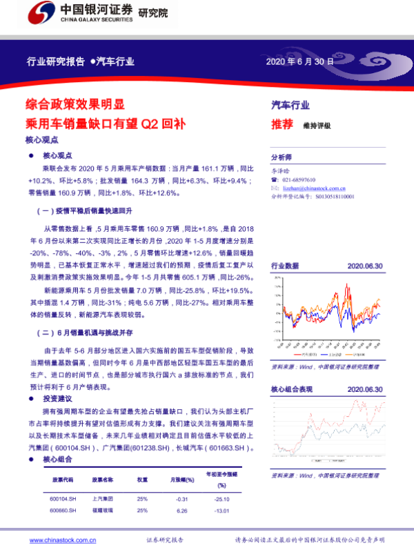 【银河证券】【20200630】汽车行业:综合政策效果明显 乘用车销量缺口有望Q2回补-28页
