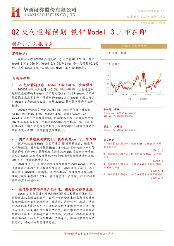 【华西证券】【20200703】20200703-华西证券-特斯拉系列报告五:Q2交付量超预期 铁锂Model3上市在即-6页