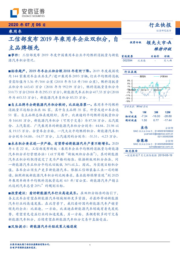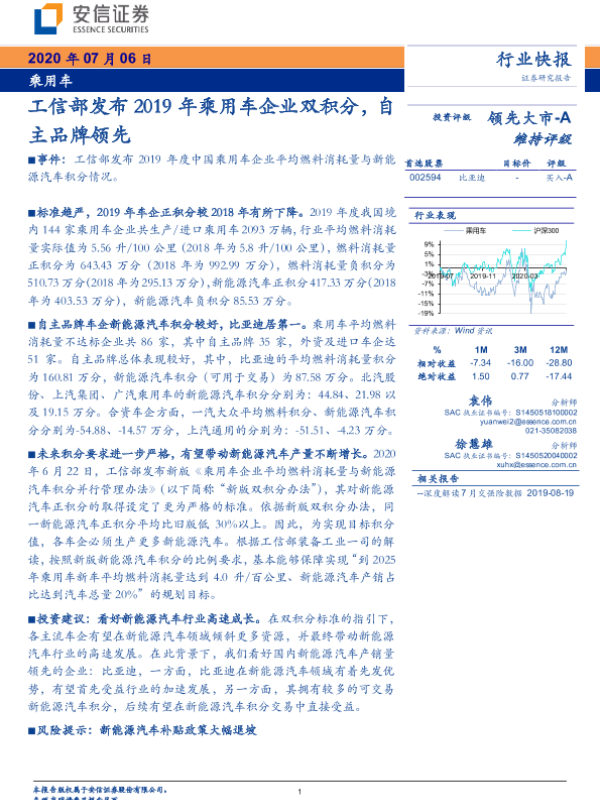 【安信证券】【20200706】乘用车行业快报:工信部发布2019年乘用车企业双积分,自主品牌领先-3页