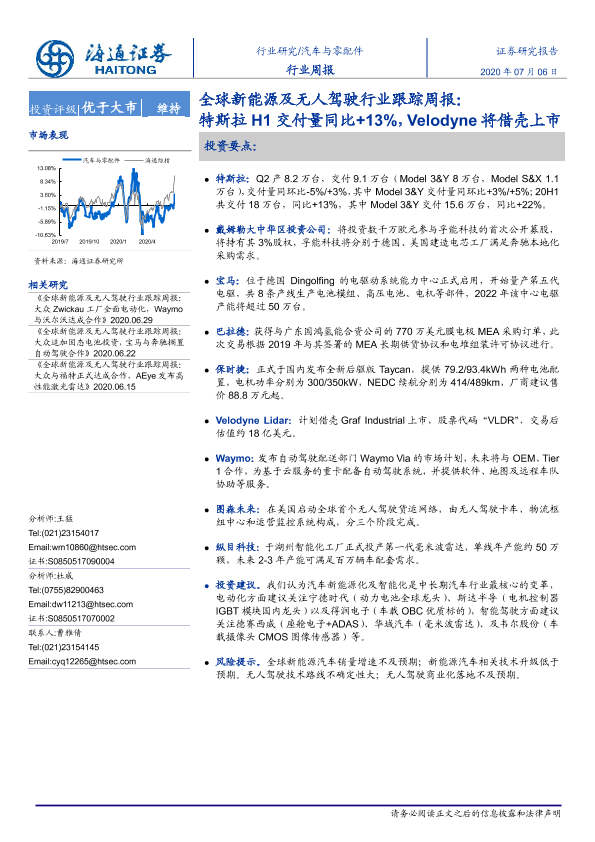 【海通证券】【20200706】全球新能源及无人驾驶行业跟踪周报:特斯拉H1交付量同比+13%,Velodyne将借壳上市-5页