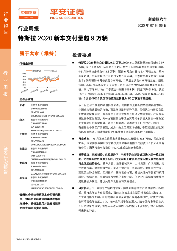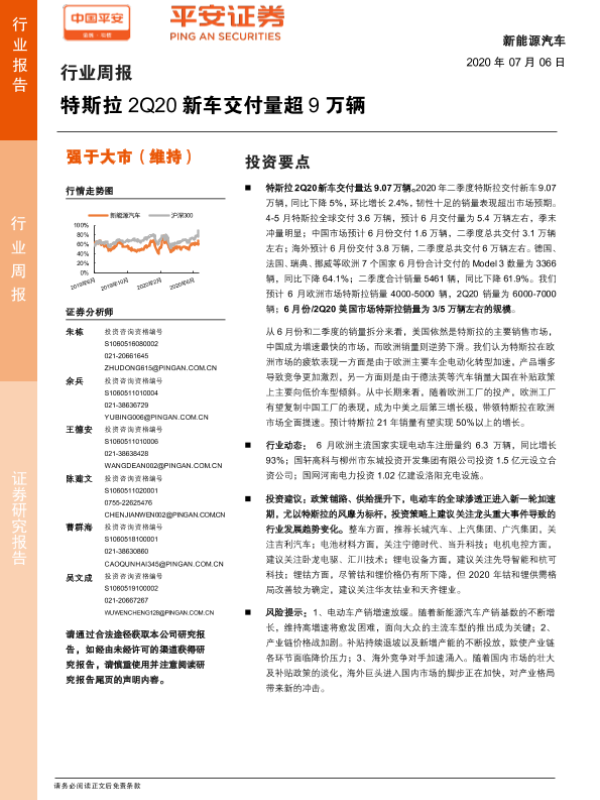 【平安证券】【20200706】新能源汽车行业周报:特斯拉2Q20新车交付量超9万辆-9页
