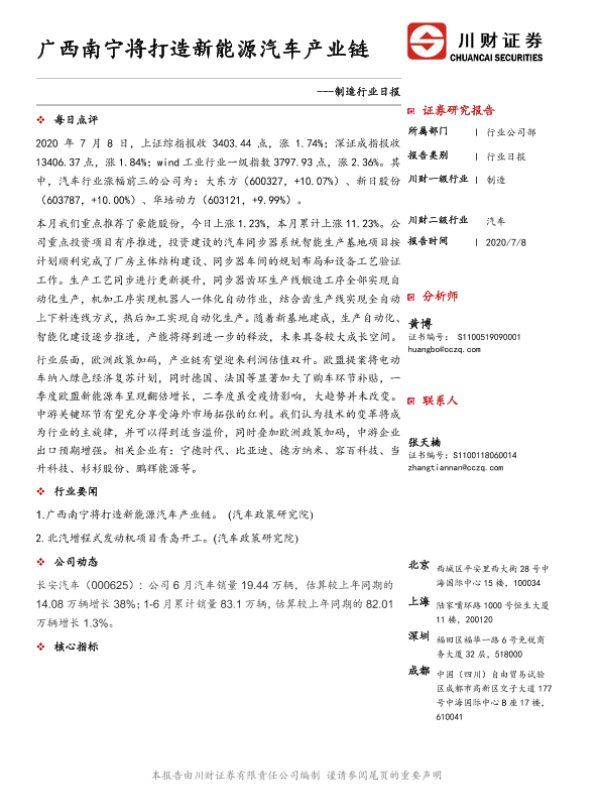 【川财证券】【20200708】制造行业日报:广西南宁将打造新能源汽车产业链-4页