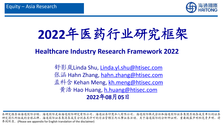 【海通国际】【20220805】2022年医药行业研究框架-59页