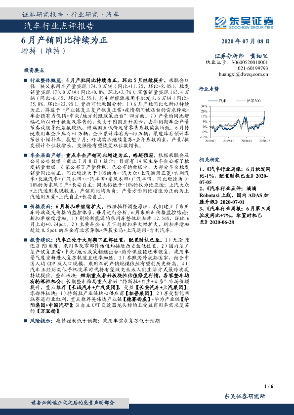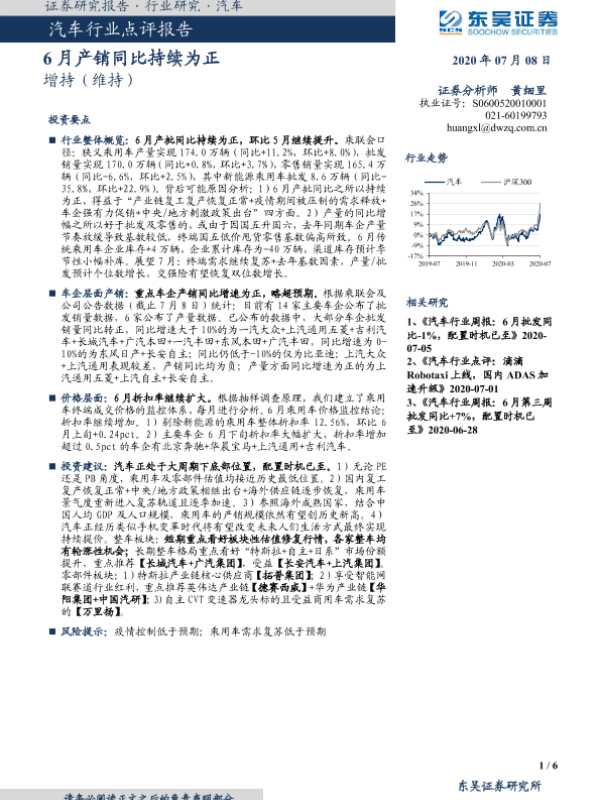 【东吴证券】【20200708】20200708-东吴证券-汽车行业点评报告:6月产销同比持续为正-6页