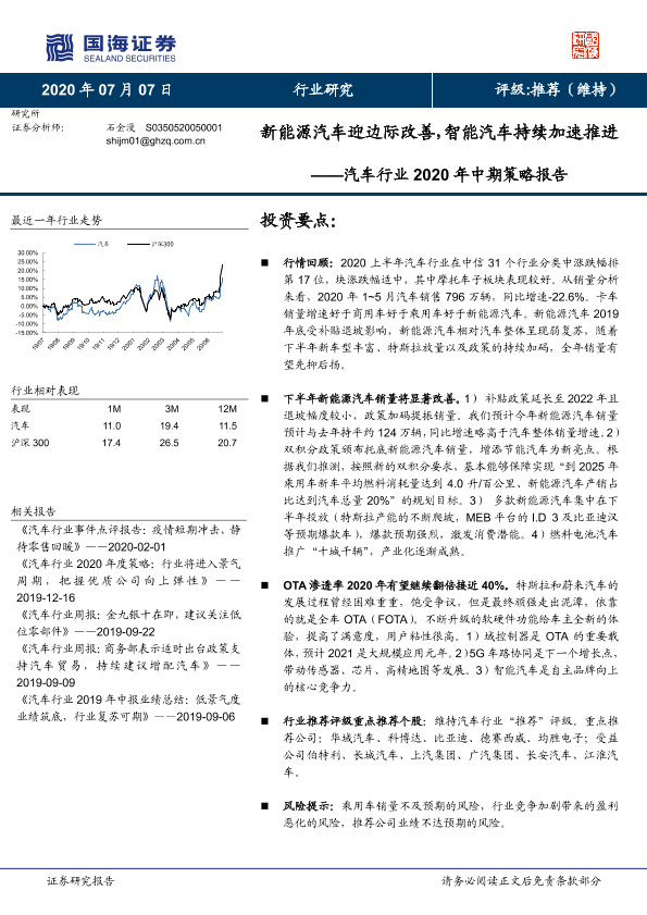 【国海证券】【20200707】汽车行业2020年中期策略报告:新能源汽车迎边际改善,智能汽车持续加速推进-32页